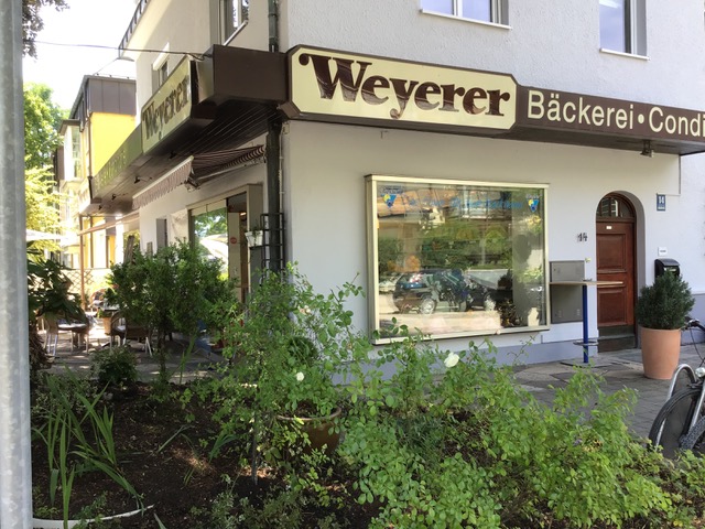 There are 2 doors, one where is billboard whit the name of the coffee shop and one bakery. The right entrance is bakery.