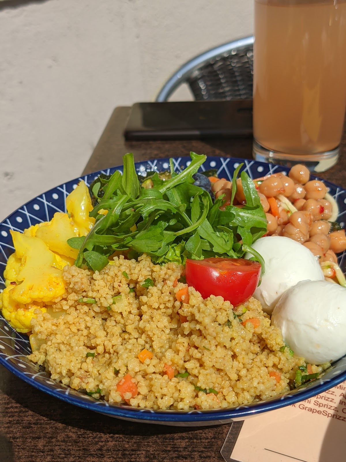 Great lunch menu and fast service, so works great for a quick lunch break - picture: salmon with vegetable curry and couscous bowl.