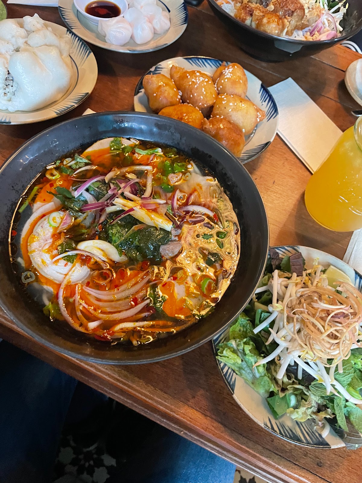 Very good Vietnamese in a hip setting. Order at the front when you walk in and they give you a buzzer that rings when your food is ready. The Bun Cha is so refreshing and the Bao burger is absolutely delicious! The tamarind ice tea was tart and refreshing as was the mango Limonade. Highly recommend if you are in the area!