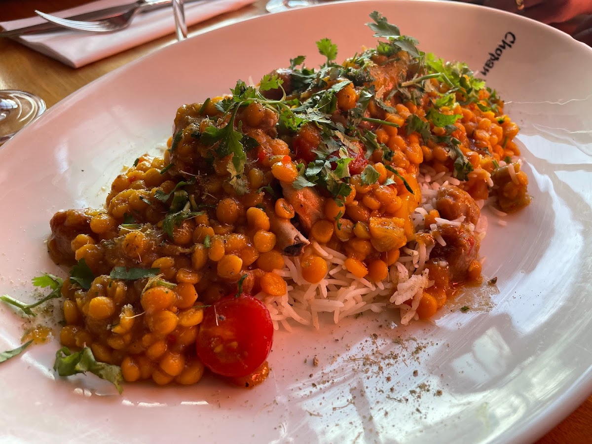 I think that was the first visit to an Afghan restaurant in my life. The interior is very coherent, dark and calming and invites you to linger. The tables are a bit crowded, but you still have enough space. Overall, the restaurant is not too big. For dinner I had the lamb skewer. It was served with almond rice and spinach. The lamb was incredibly tender and perfectly cooked. The side dishes were just perfect with it. And although I'm not a big fan of basmati rice, I found the combination of the almonds, the rice and the please orange peel very convincing. A great evening.