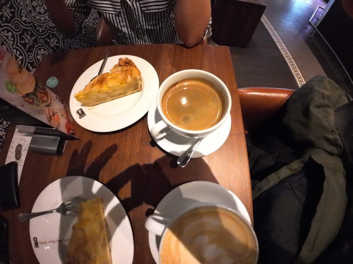 We entered here hiding from the rain. We ordered for me black coffe and white hot chocolate for my wife. And a cheesecake. It was quite tasty and not expensive. So keep this place in mind, I advise.