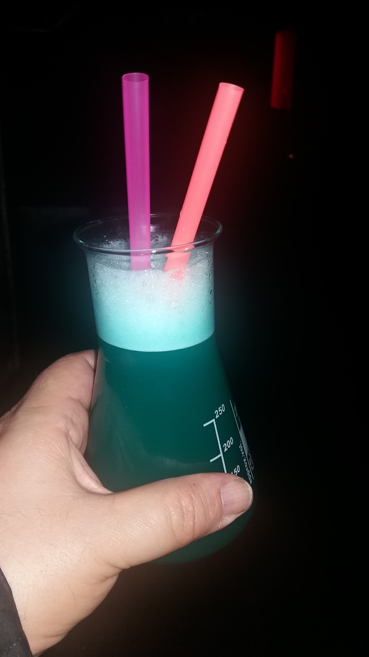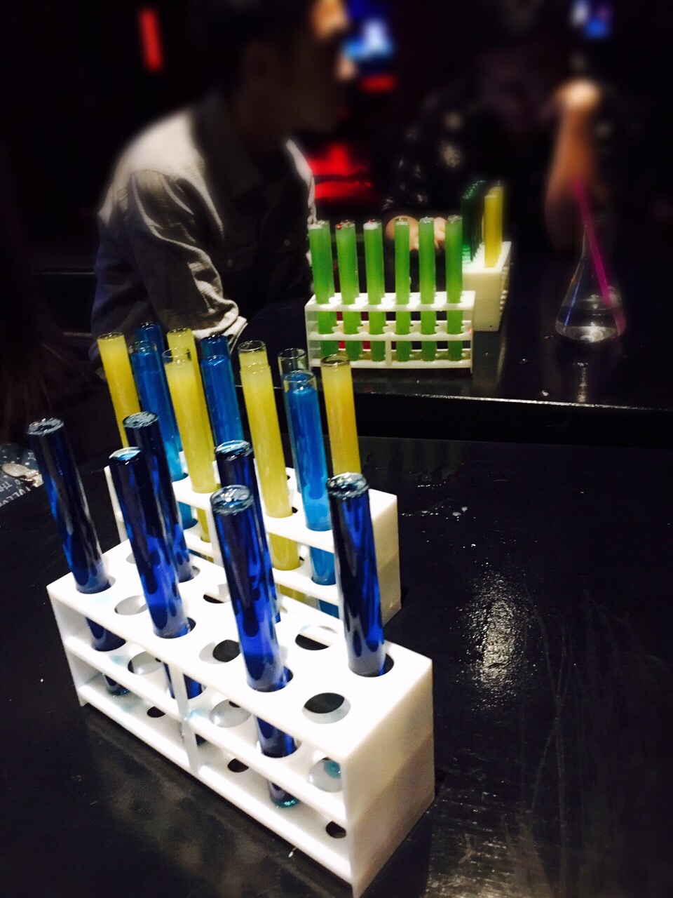 I had a really fun time here. The idea is that all shots are chemistry-based in that they serve all drinks in beakers and test tubes. They also have flaming shots!