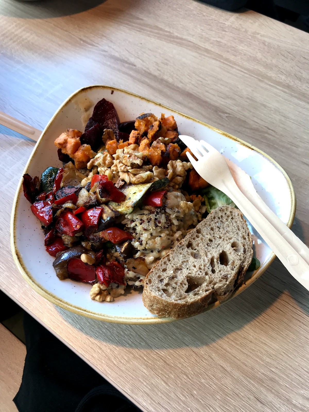 Very nice place for a lunch. I orded twice a bowl and was pretty satisfied with the quality of ingredients. The vegan bowl wasn't really my taste but the crispy chicken bowl fully fulfilled my expectations :) Besides pretty good coffee :)