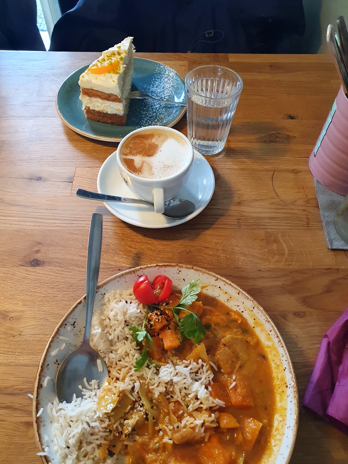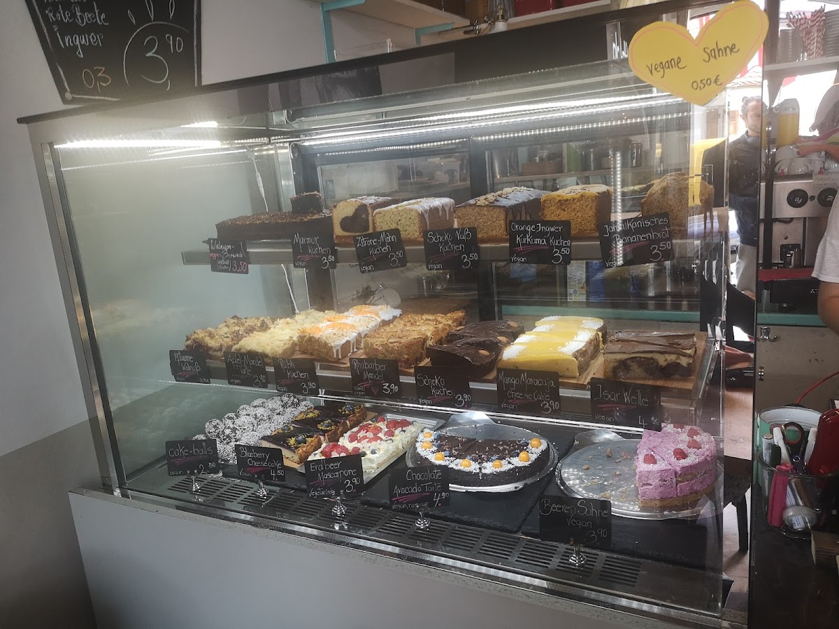 I have been there twice in thid quainty place. Very friendly staff. They offer vegetarian and vegan cakes and meatless menu too and there is no hipster alert. It is hidden on a quiet side street of Giesing. You can sit outside or inside and there is enough space. A little gem that I recommend.