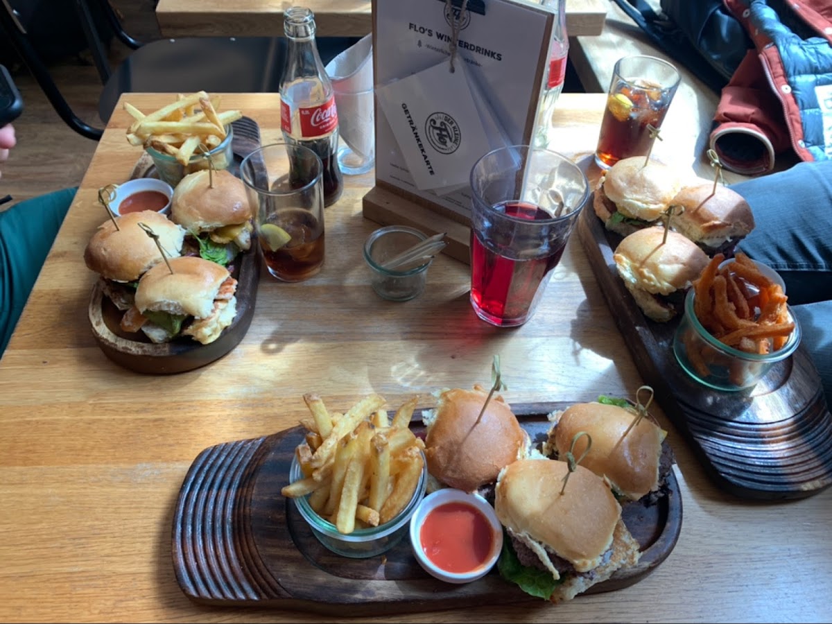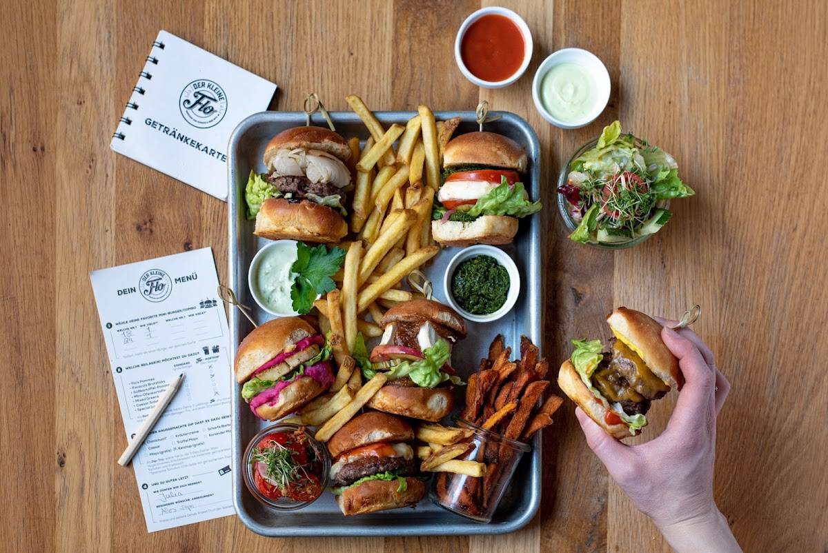The concept is really nice. There are different menus that you can choose, (2/3/6/10 small burgers + french fries + dip), price depends on your choice. For some hamburgers you have to pay extra 1€.