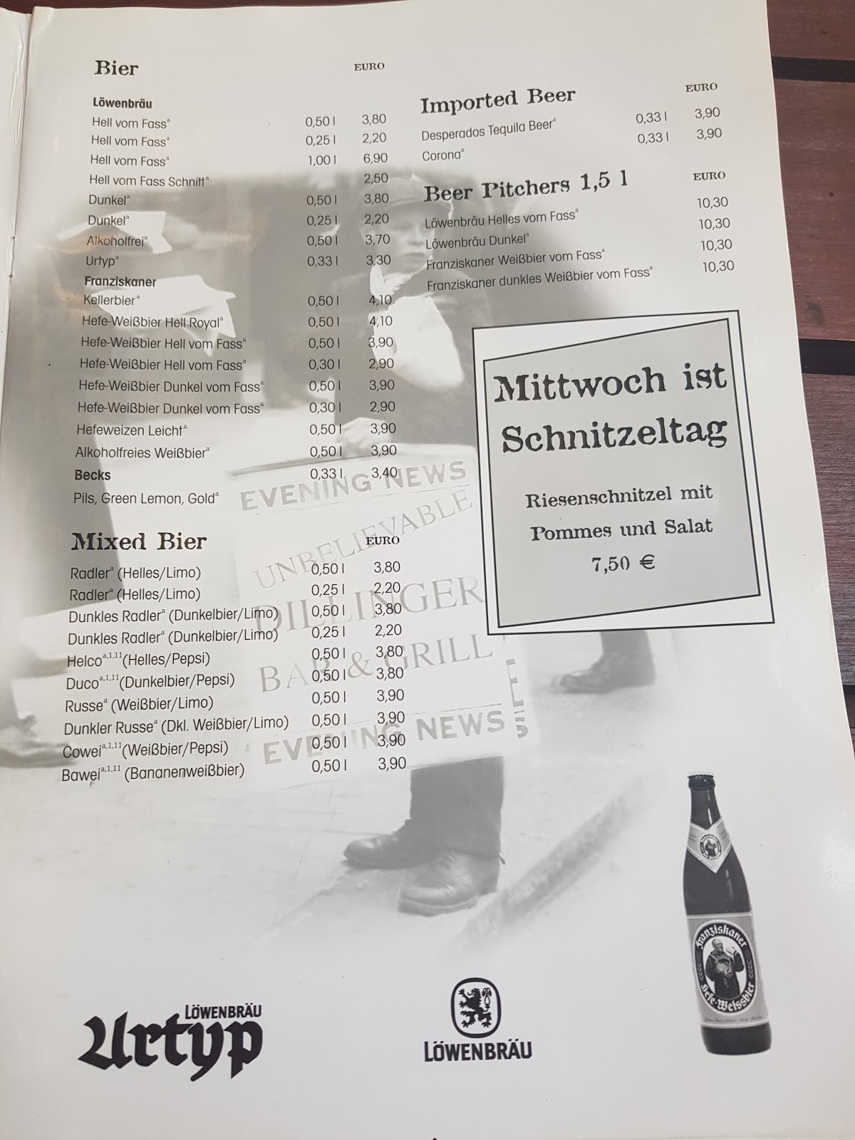 The waiters/waitresses are very nice and friendly. The food comes in large/huge portions. The place has a deal for each day of the week, except the Tex-mex buffet on Tuesdays that is currently cancelled due to the pandemic. A happy hour is offered twice a day from 5 to 7 and from 10 to midnight. The drinks are worth the price and are really large. On every weekday from 5 to 7 any burger will cost you 8,9€. On Wednsday the schnitzel plate (with fries and salad) is offered for 7,9€. On Sundays, the pork meat with knödle is offered for 7,9€. There is always a background music. I really recommend this place. Especially for a pre-party time on Friday. Enjoy a burger and a couple of drinks for a small price before you hit the party.
