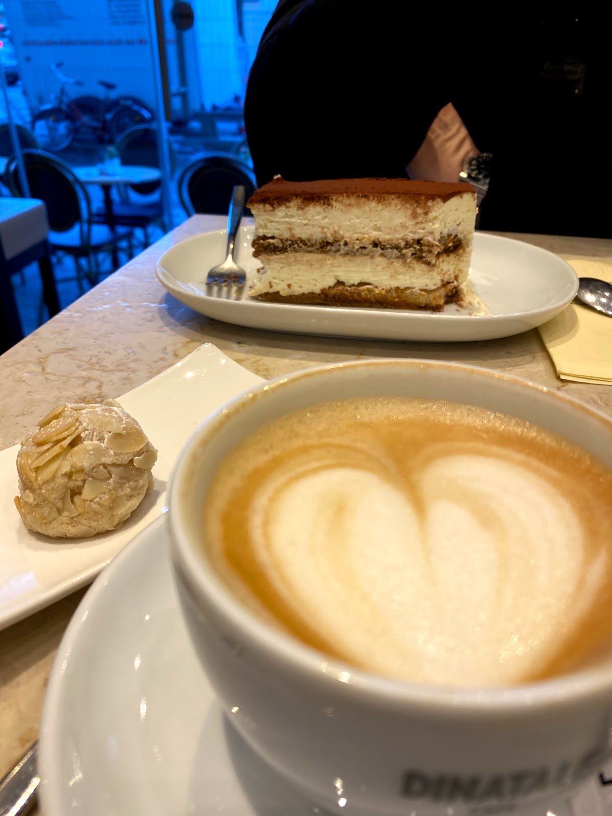 Extremely great Espresso and cappuccino, as well as delicious cakes. the waitress was really nice, streets are not too loud, Soo you can sit outside and have a conversation.