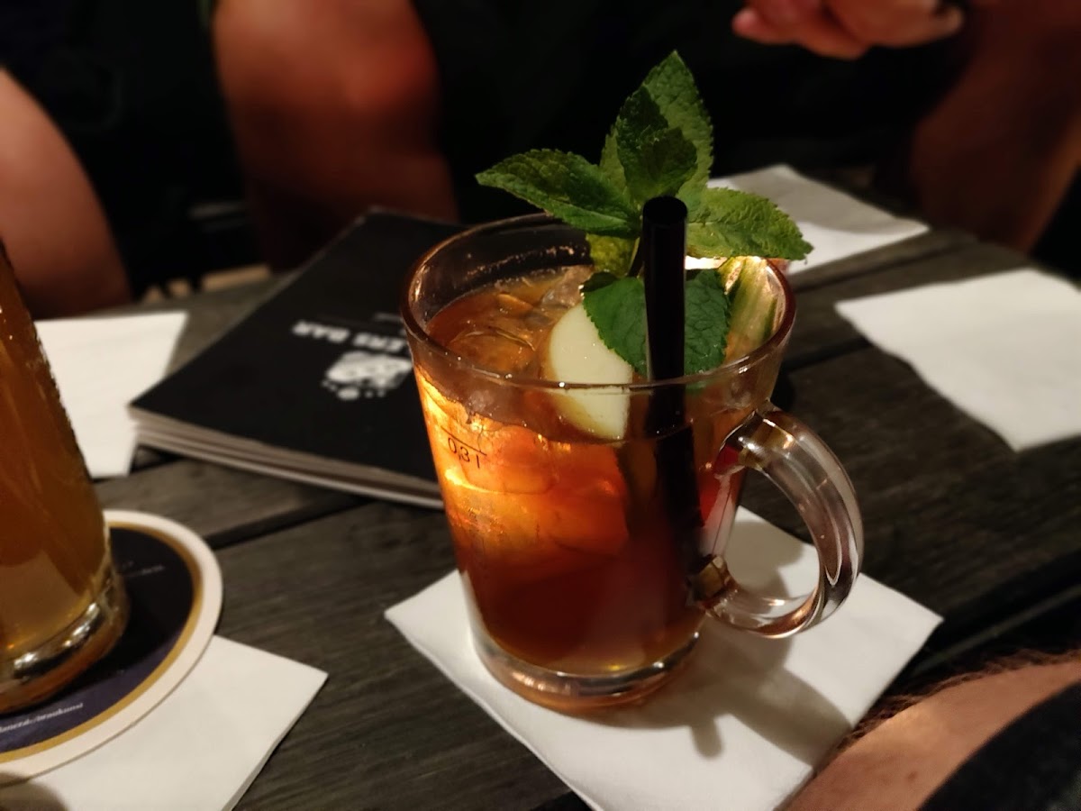 Very nice looking bar, really cool to see their distilling equipment and it’s in production too, according to a sign in front. The wall has paintings about how their booze is distilled, and they have bottles of it on the walls too. We tried both the distillers vodka in a martini and gin in a gin tonic, unfortunately we didn’t like the flavor of either, they were very dry and strong, no floral or botanical undertones nor subtleties. Kinda just very in your face, like the booze you get drunk to. But we enjoyed the overall vibe of the bar very much, I would go back again!