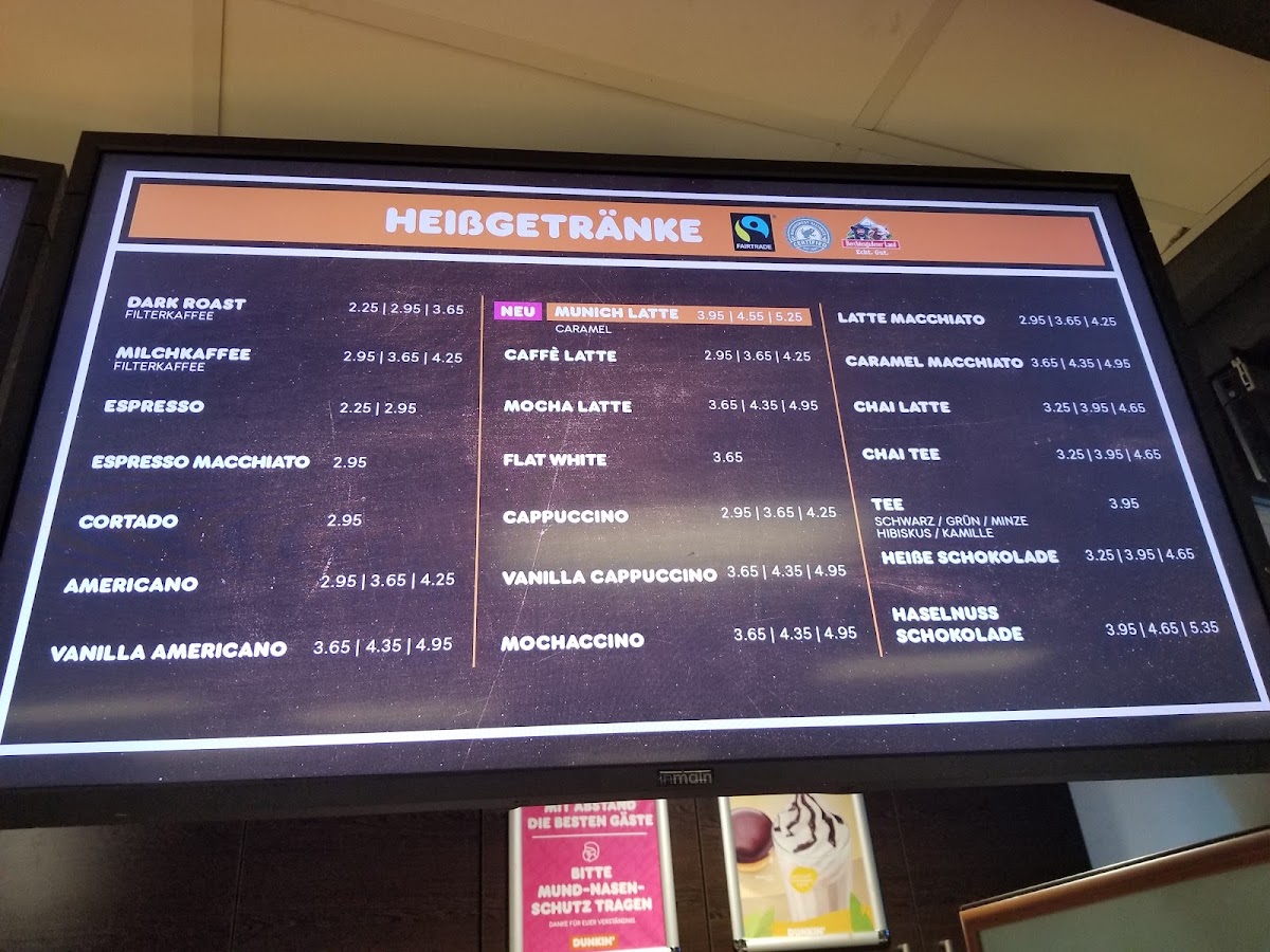 Ordered an iced latte but there were no lids to be found for the plastic cups so was given it in a paper cup, a bit unpleasant having ice come out in every mouthful. The drink itself was not to the usual Dunkin' standards.
