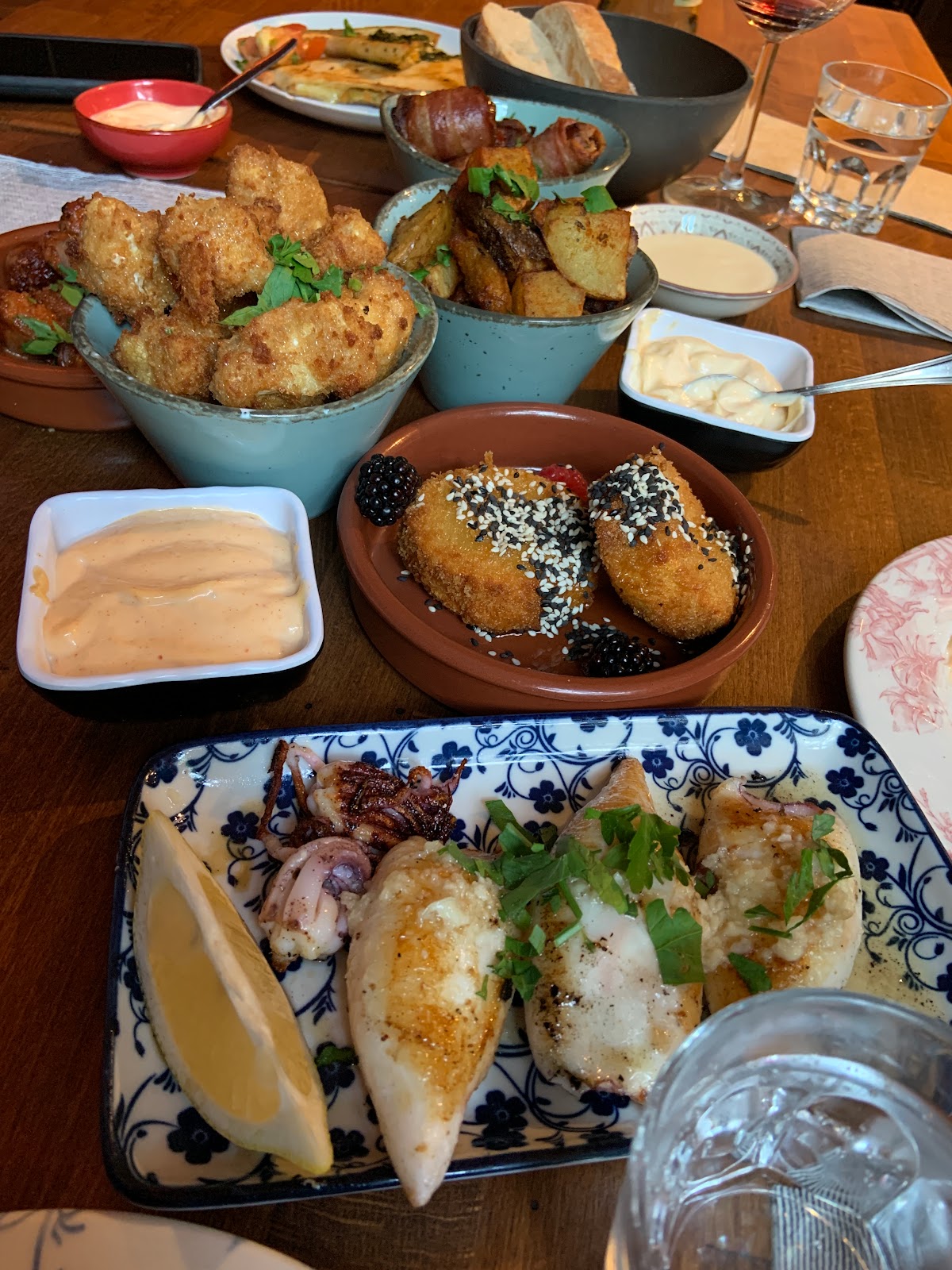 It was actually the worst crème Brûlée I’ve ever eaten. Like I don’t understand how you can make it taste like sweet scrambled over open fire in the woods. The food was ok, the warm dishes just needed a bit of salt and flavor. I liked the calamari actually, and the aioli and bread.