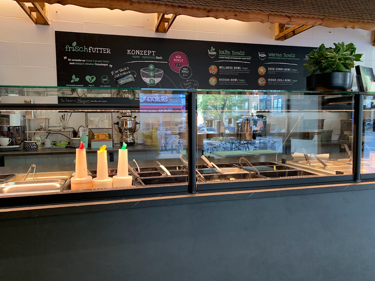 (Translated by Google) Serves very rich, delicious hot and cold bowls. All vegetarian or even vegan. Unlike other bowls, the portions are large and you are actually full. In addition fair prices. For 8.50 euros you get a lot of vegetables. A dish changes every week. There are desserts. Cake vegan and gluten free. Perfect for lunch. You can get wrapped up well in 5 minutes or stay in a pleasant atmosphere. There is also space for larger groups of up to 6 people. I am here regularly. The people who work there are all sweetheart. The tastiest and most likeable lunch spot in Maxvorstadt.