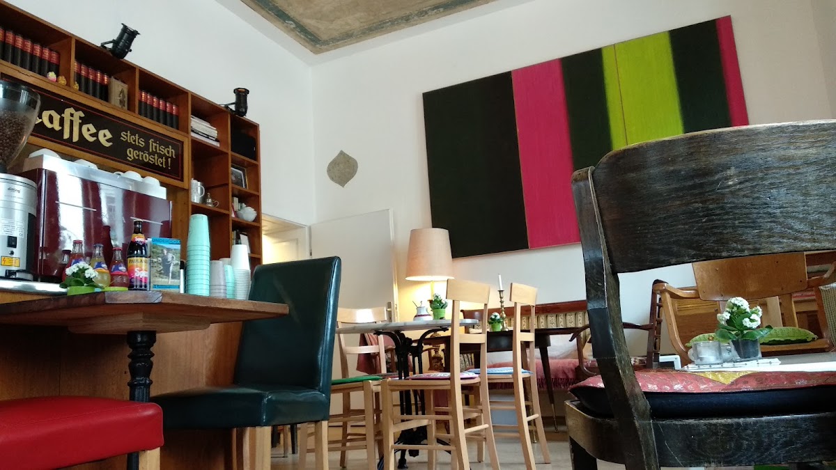 Very unique place with an exceptional selection of organic and even glutenfree cakes. On top always different exhibitions with artists from Munich! The story of the café is beautiful...go and enjoy yourself!
