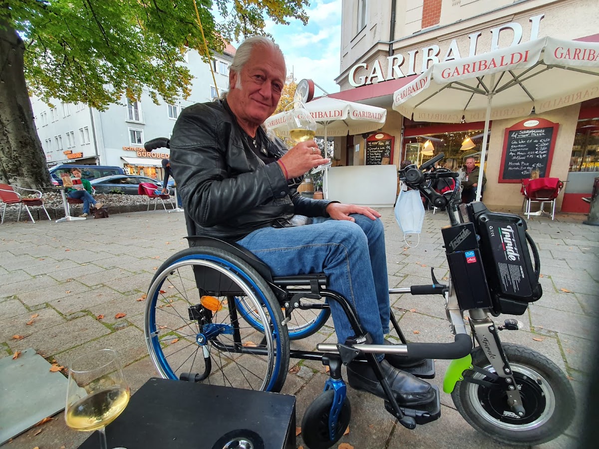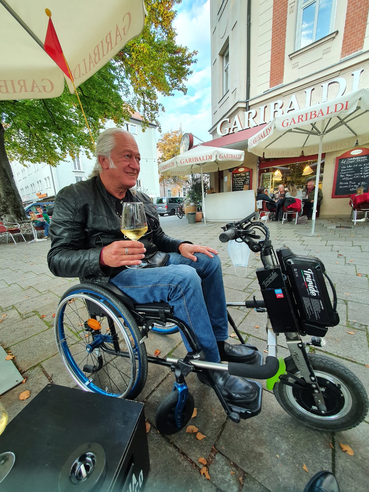 Bei schönem Wetter kann man auch draußen sitzen und Wein trinken. Es gab sogar Snacks zu essen.