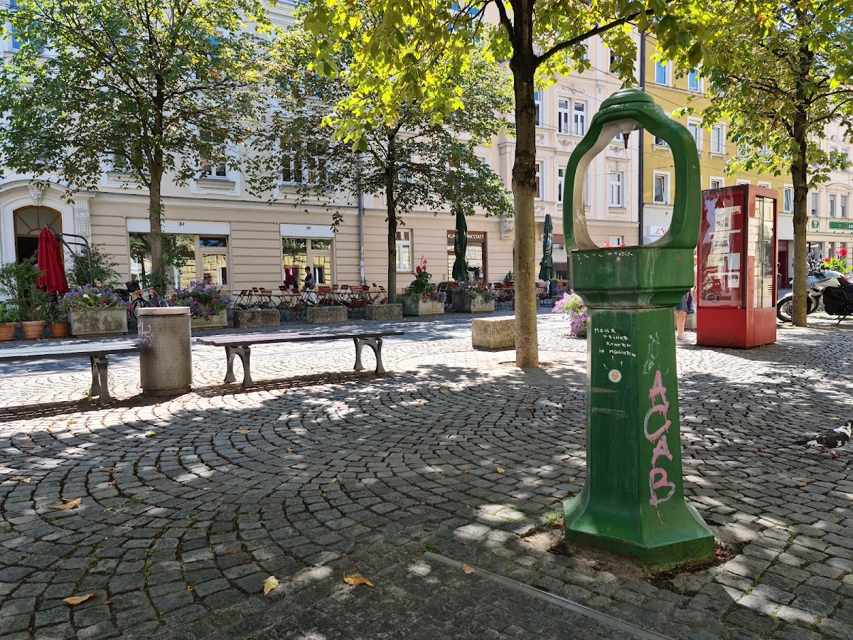 Ein uriger Platz mit viel Haidhauser Flair, alten Häusern und Kneipen. Hier gibt es Bänke, einen traditionellen Trinkwasser-Brunnen und einen gepflegten Bücherschrank. Ruhig ist es nicht, da immer wieder die Trambahn direkt nebenan vorbeirumpelt, sowie Autos und Radler. Für eine kurze Pause ganz ok.