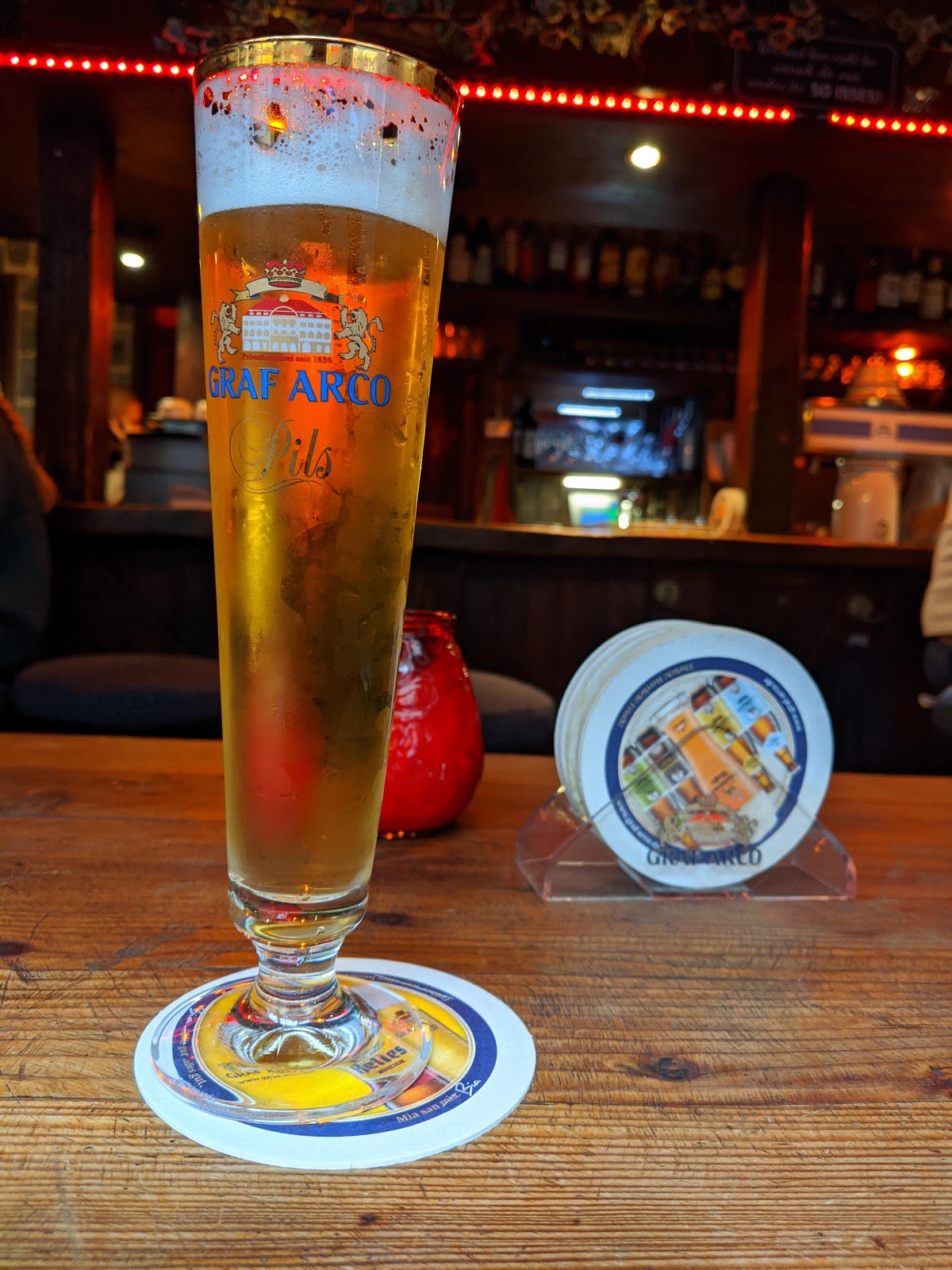 Beer is great, as well as the ambiance. Fresh Pils on tap in the heart of the land of the Helles is quite difficult to find. They have also a wide variety of Weißbier on bottles. It looks like a super old school tavern, with heavy woods and low lights. Definitely recommend for a happy hour or a quick stop for a beer or two.