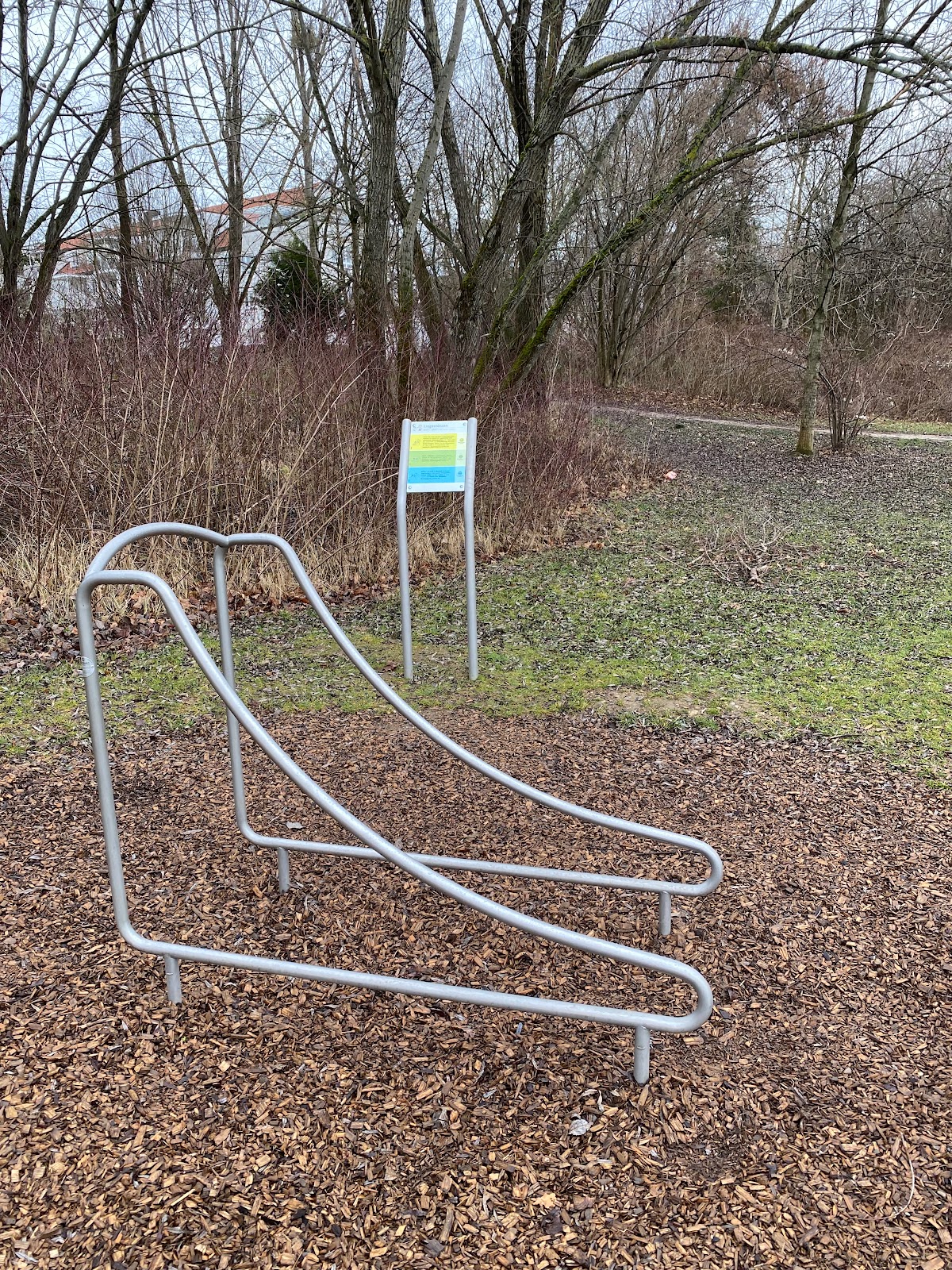 Viele Gassigeher mit ihren Hunden: bleibt am besten auf den Wegen. Die 8 Hektar sind jetzt nicht üppig. Für Eingefleischte Spaziergänger ist es zu wenig, da hat man mehr Freude im Englischen Garten. Auf den zwei XXL Bänken passen maximal 8 Leute … mit Blick zum Tower der Süddeutschen Zeitung. Ein kleiner Fitnessparcour ist fûr die Sportler. Functional Fitness Outdoor … aber gut, dass man die Möglichkeit hier hat!