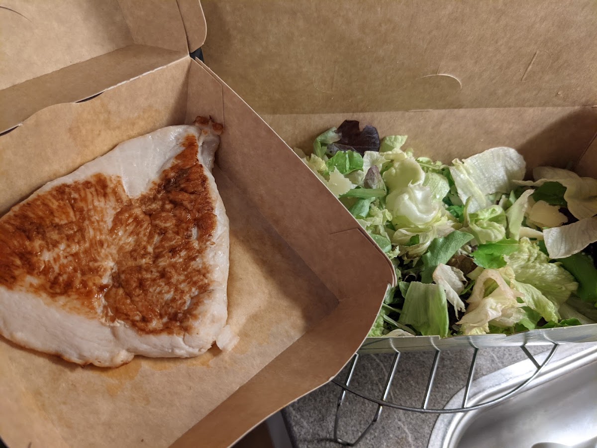 We order salad to go. Waited 32 Minutes, as I am assuming the waiter forgot the order despite me asking 3 times. Anyways in the end, 14 euros gets you the salad in the photos: a basic salad mix and chicken that is not even sliced up. A few cherry tomatoes would have been nice, but oh well..