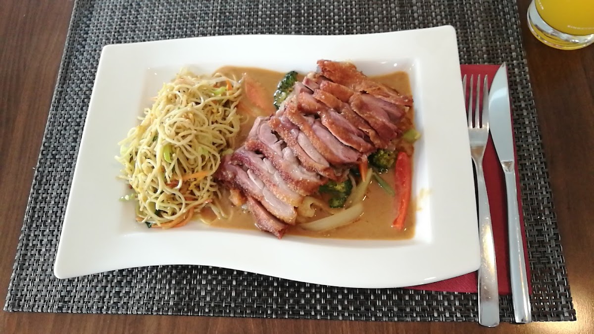 Lunch menu is really nice, including a drink, an appetizer (I like the tom yum soup with chicken and mushroom a lot - fresh ingredients). I ordered stir-fried beef with cashews and sate duck with noodles. Every dish is well-presented. Plus the staff is very friendly and enthusiastic in explaining the food.