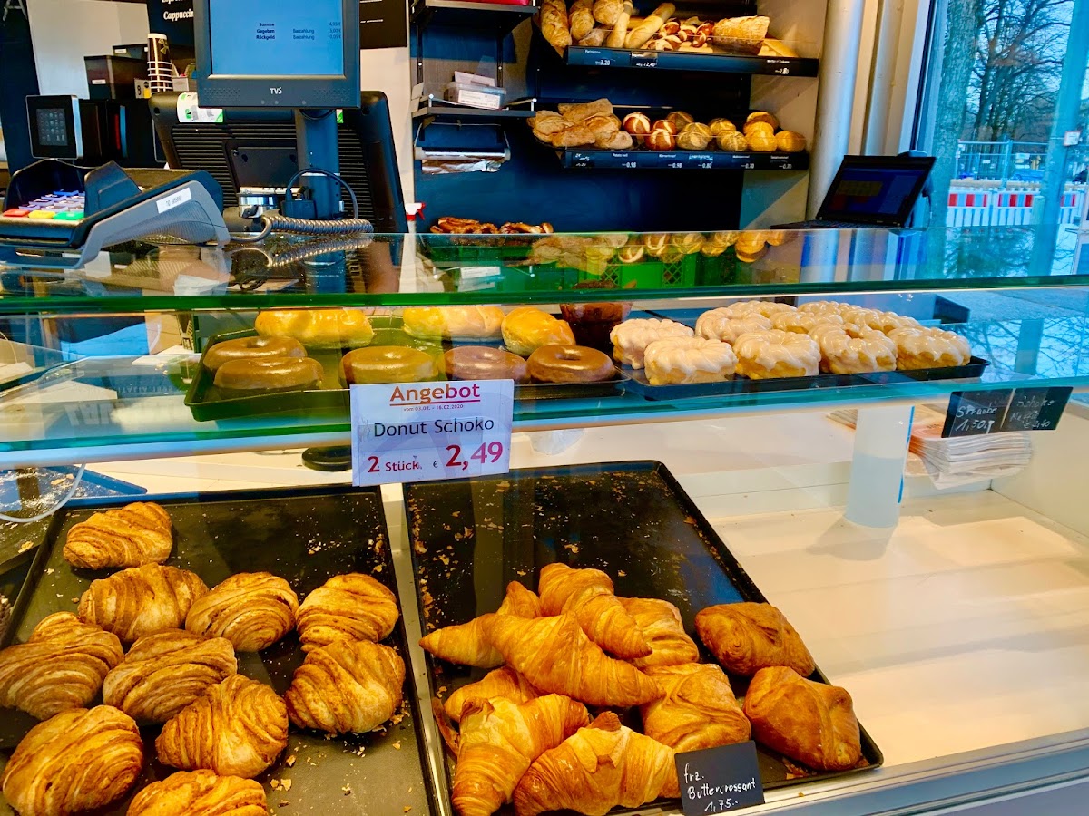 Best bakery ever. Very little selection of croissants, bagels, pretzels and coffee to go. Good breakfast or evening snack option.