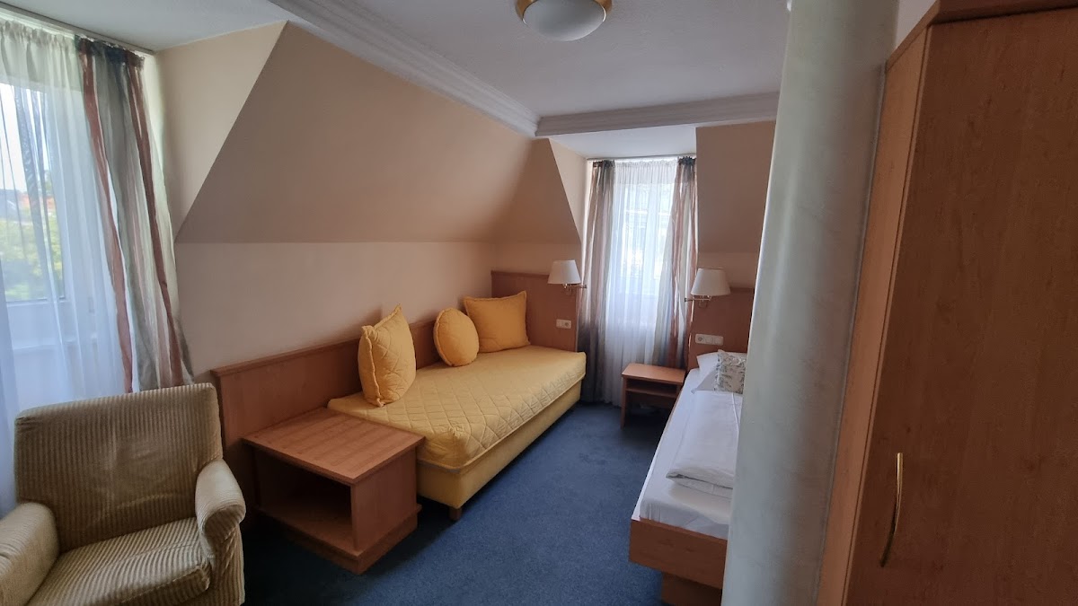 We arrived at the hotel room and found the television not working, the bed pillows beyond wornout and only light curtains unsuitable for a bedroom in our opinion. The only available member of staff didn't know where to find extra pillows and had no idea how to fix the broken TV. The hotel manager was unavailable. We checked out that same day and found us another hotel in Munich.