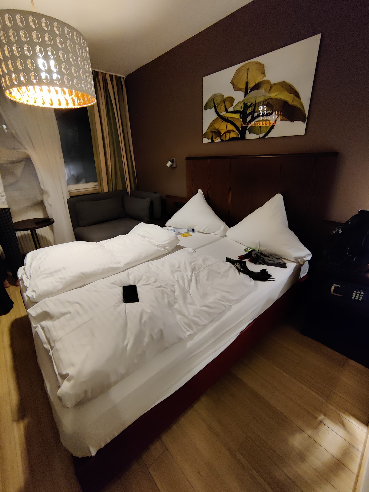 100€/night for a sauna. No aircondition at all and turkish bar downstairs play music till 24.00 so Windows cant leave open for some air..Bed ok. Pillow not. Toilet is also leaking and carpet on the aisle of the floor is cowered on some protection carpet? Mayby original carpet is broken.on water damage?