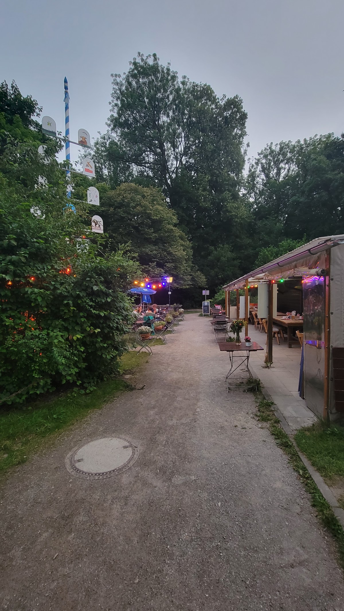 I absolutely love this place. We run into this lovely biergarten while we were going for a bike ride and it's been a nice surprise. It's surrounded by eighty beautiful private gardens, very near to the grünwald. The food was delicious, better than in other biergarten around Munich and the host is friendly, kindly helped us in the food choice and told us about future events :)