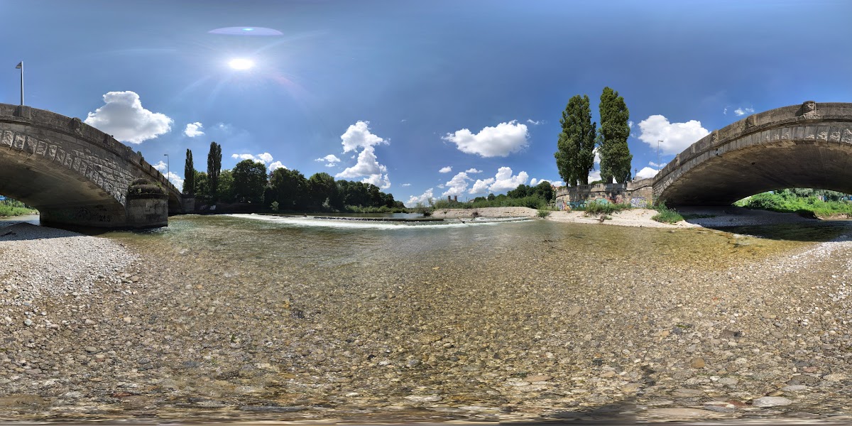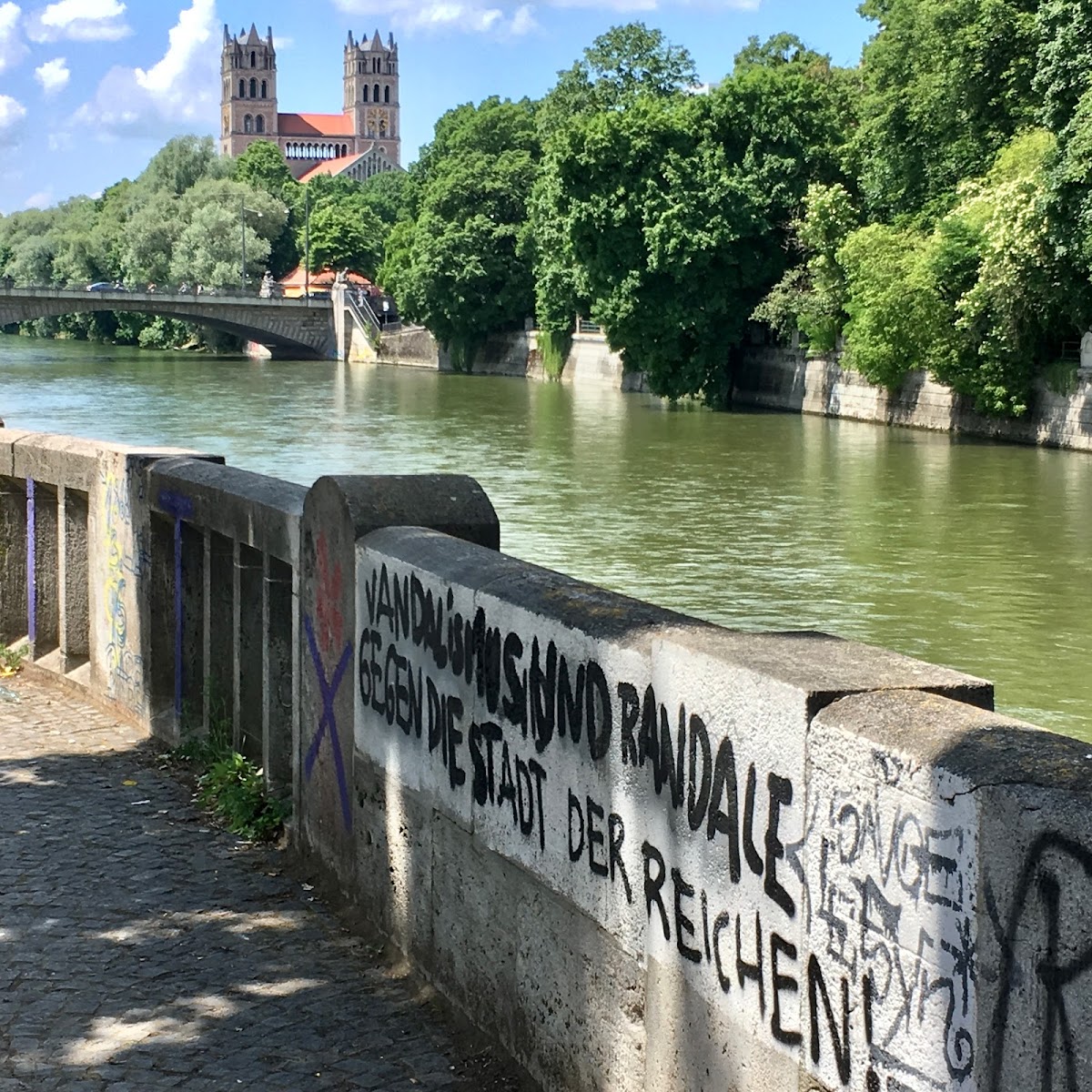 Ein an sich schöner Ort mit einem ungewöhnlichen Blick auf die Corneliusbrücke. Mitten im Rauschen der Isar lässt sich hier auf sicheren Boden die Sonne und wetterunabhängig ein interessanter Ausblick genießen. Leider lassen auch hier einige liebe Mitbürger ihren ganzen Müll zurück.