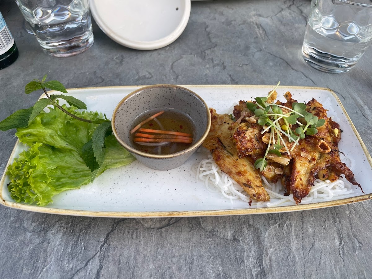 I ordered the cornfed chickenbreast on noodles for 15 Euros. It was in the Menü under “grilled meat”. The portion was ridiculously tiny. The waiter later told us that it was just an Appetizer. But the Menü did not say that anywhere.