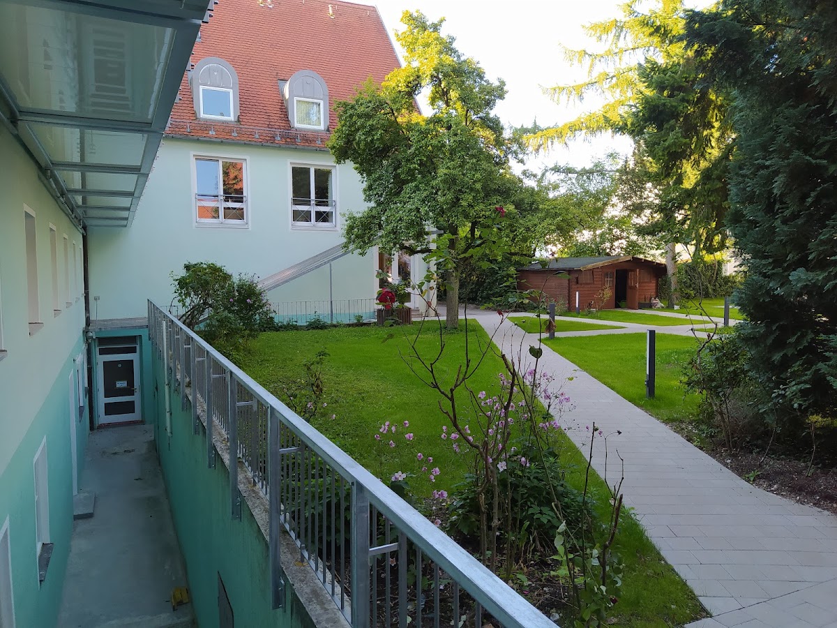 Before Corona, a circle of friends was created here in the leisure room with billiards, table football, table tennis and in the courtyard with a pond. You have your peace of mind in your own room, but you never feel alone, because in the common rooms you meet open and nice roommates with whom you can spend time.
