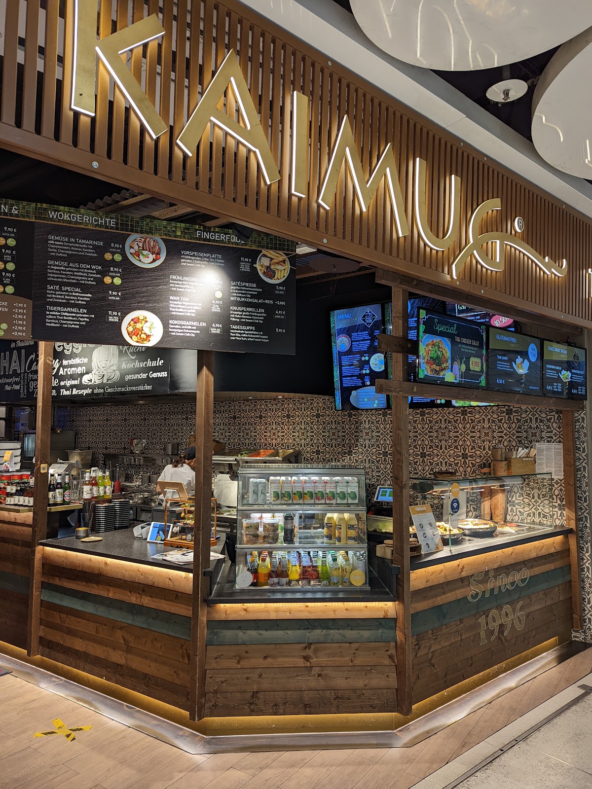 Kaimug is a restaurant chain im Munich with different locations. The recipes and look of the restaurant are all the same. So the food is quite the same and always ok. You get fastly your meal and the price is very fair. I can imagine that the job in the mall is a bit stressful and therefore some customers felt that the statt was unfriendly. Me, I was always treated fair and will continue to have my snack here.