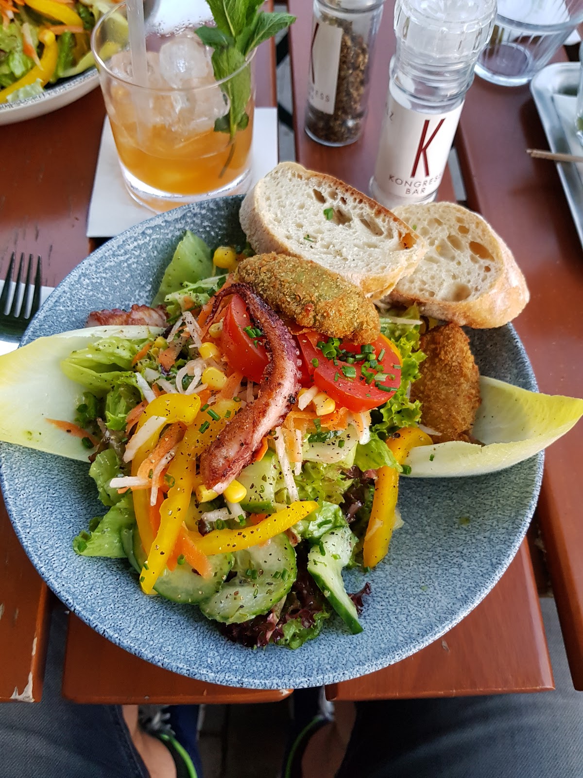 Wonderful service and wide variety of cocktails and drinks. We arrived quite late not having dinner and the waiter brought us free snacks. Around 10 euros a drink, 3 euros a beer