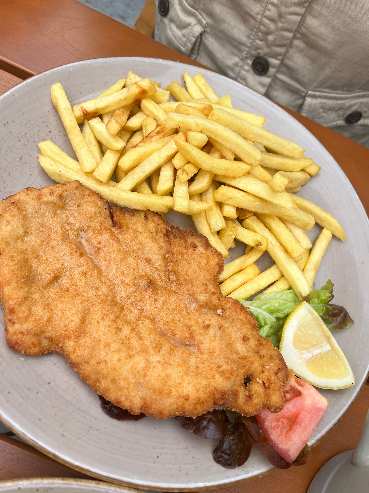 Had the Gyro and turkey schnitzel. Healthy and tasty portion of lamb. Fries were average. The schnitzel was nicely cooked and juicy. Service was slow.