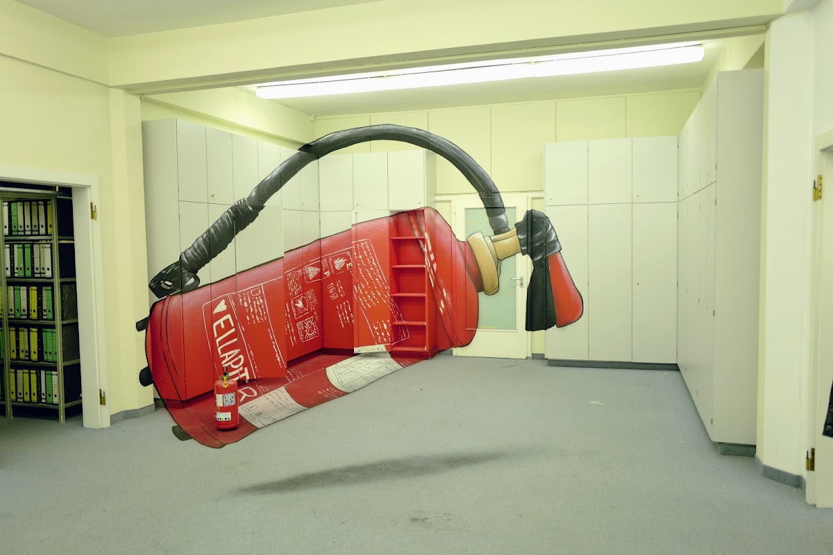 This building used to be the headquarters of Tengelmann and is due to be demolished soon. So it's really interesting that a Pop-up art space was built here for a few months.