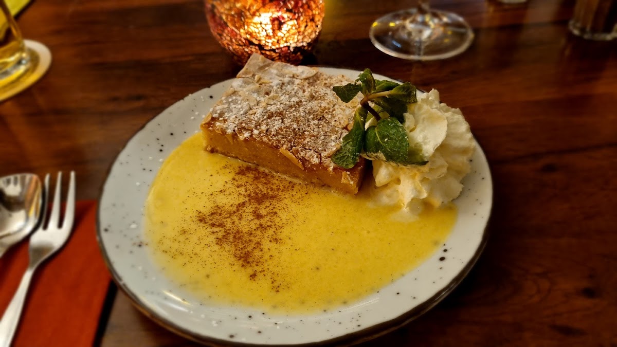 We had the Tapas plate for two, which was tasty. And the almonds cake with vanilla sauce, also very good.