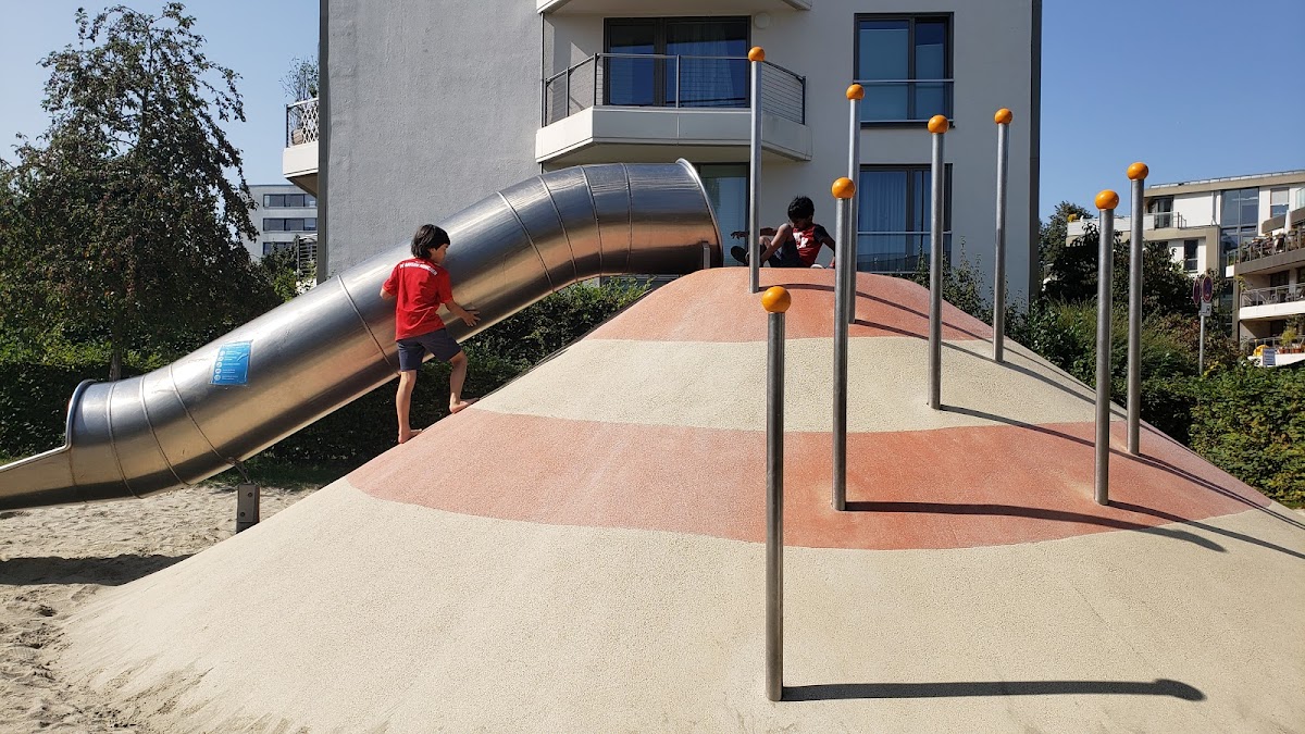 Small square of the district with meadow and benches right next to a café and Greek restaurant. During winter and summer there's regular activities, festivities, markets etc. Nice to hang out also on the evening. On weekend evenings people meet here to chill out.