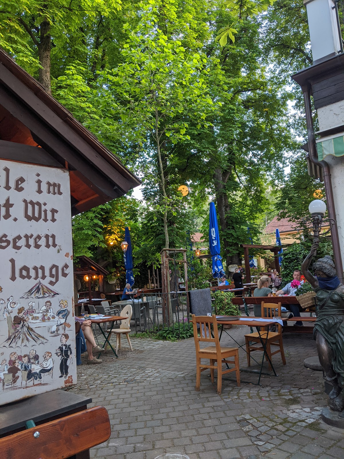 Beautiful beer garden, plenty of food to select and variety of drinks. If you have kids, even better as they have jumping castle and play area for kids. There are usually lot of people and you might have to book the place in advance, and for food, you too have to wait a bit longer. Beautiful trees and flowers help to be patient.