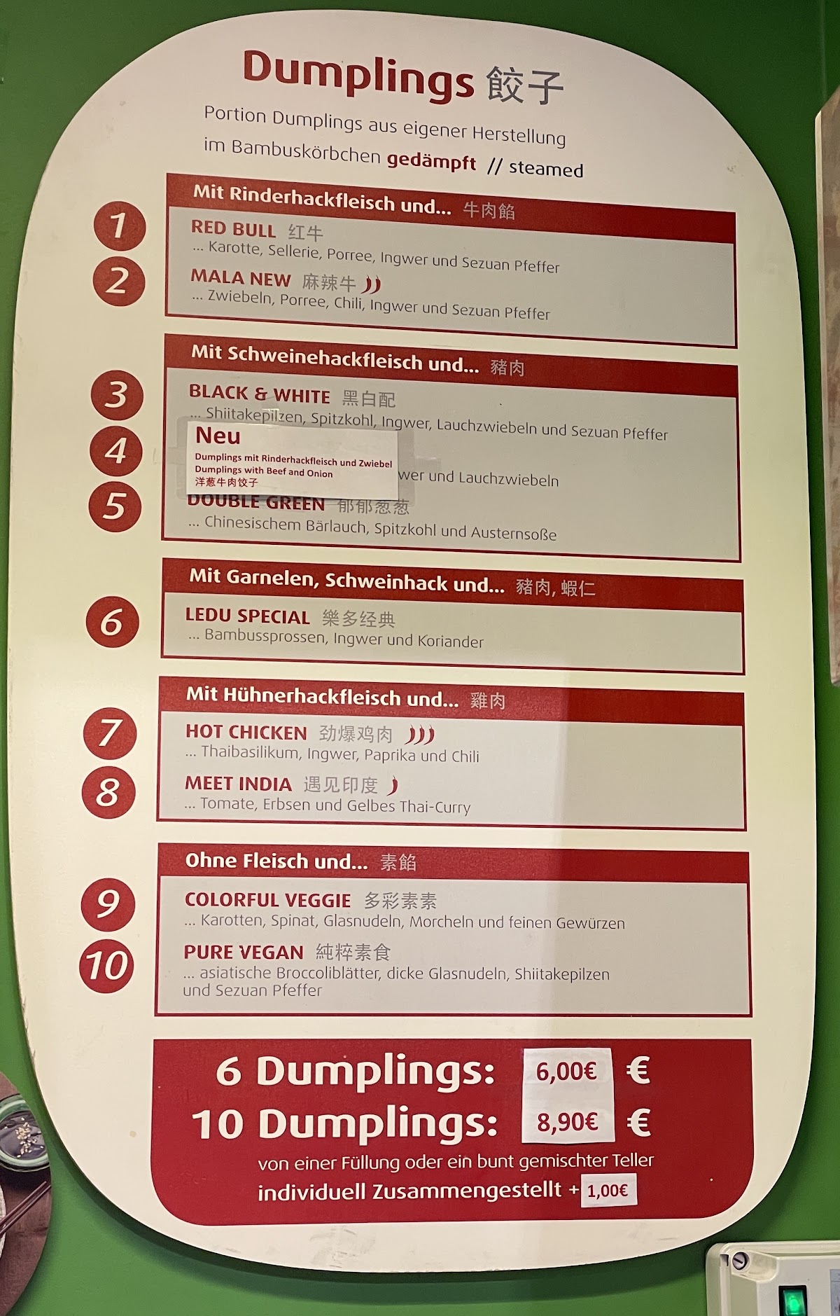 Since I'm a vegetarian, there are literally just 3-4 options to choose from. Loved the vegan dumplings. The staff could be lil' more friendly. Would be great if they had card payment option. Do note- only cash accepted at the Stachus Passage/Karlsplatz outlet.