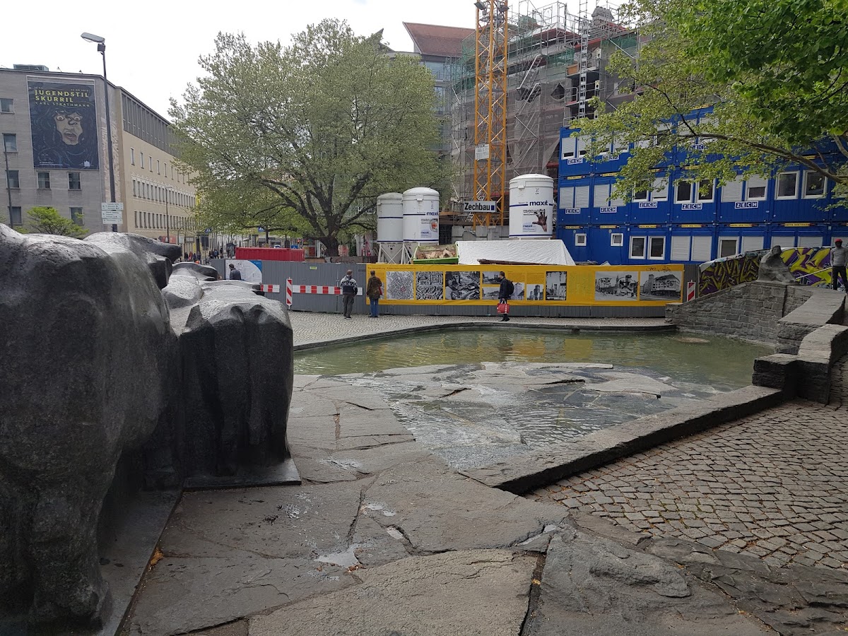 This is a small public square in the Old Town. There is an interesting sculptural fountain arrangement to see. This is a memorial fountain to the old cattle market that used to take place at this location.