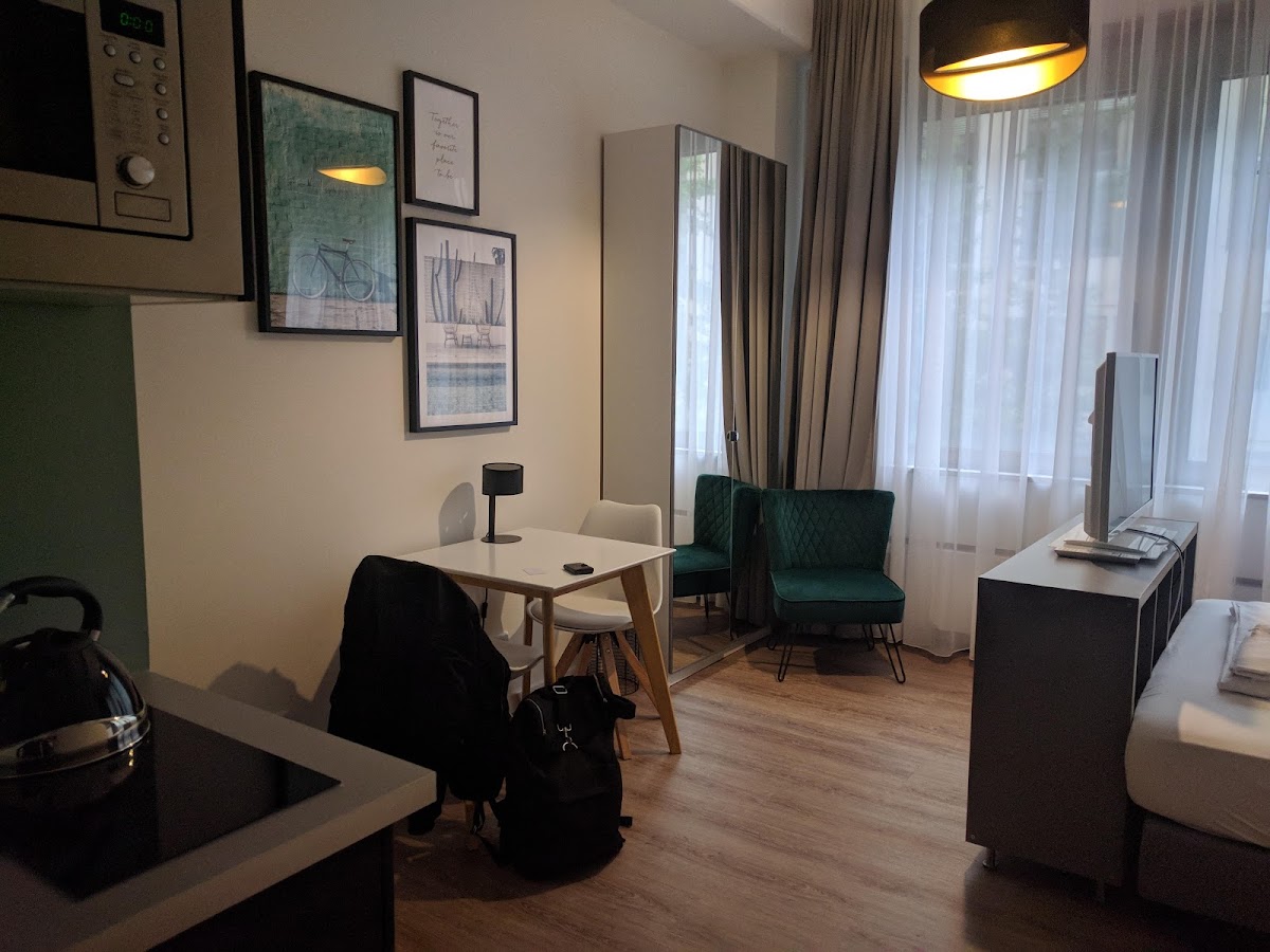 I've chosen this apartment at random. I lived here for 2 months after relocation to Munich from Canada. I couldn't have felt more comfortable: the place was very clean, the staff extremely helpful. I found there everything I needed for living and working on my business. It is conveniently situated a 5 minute walk from PEP shopping centre where you find everything from groceries to high end fashion, bakeries, fish market, etc. I couldn't recommend it more warmly. It was beyond my expectations.