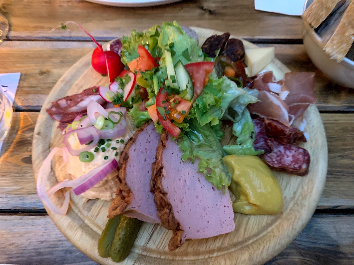 The food was outstanding (everything from the the sausages, burger, potato salad - best I've ever had, apple strudel, to the coffee). Good beer, too. The service was outstanding and very courteous. We don't speak German u0026 they personally took time to explain everything to us u0026 answer any u0026 all questions. Highly recommend.