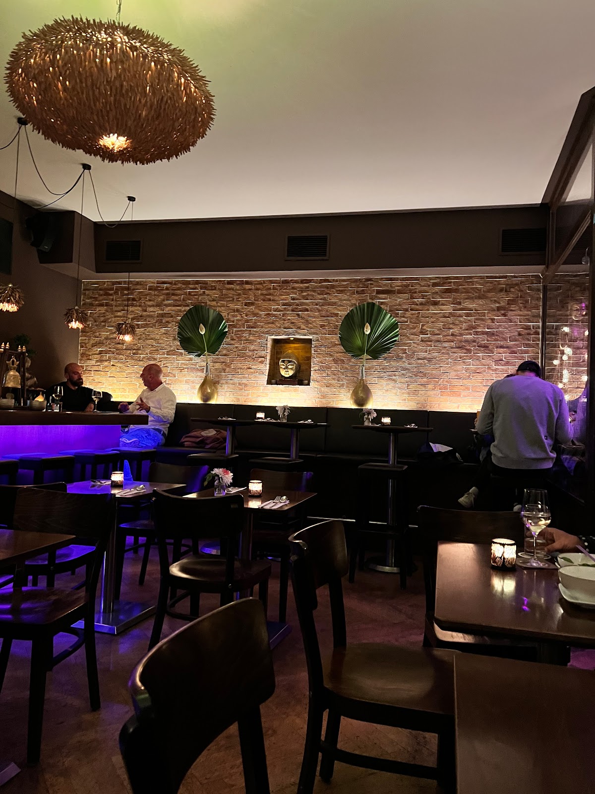 Yum and Son Tam. We ordered 2 starters and 3 main dishes for 3 people. Pretty good! A bit spicy but it a good spicy for the Thai cuisine. I also love the cocktail here and ai had mojito lemongrass, very fresh and tasty. I would recommend to try seafood and also noodle. I will come back sometime with friends and family. The location is also a plus for this restaurant.