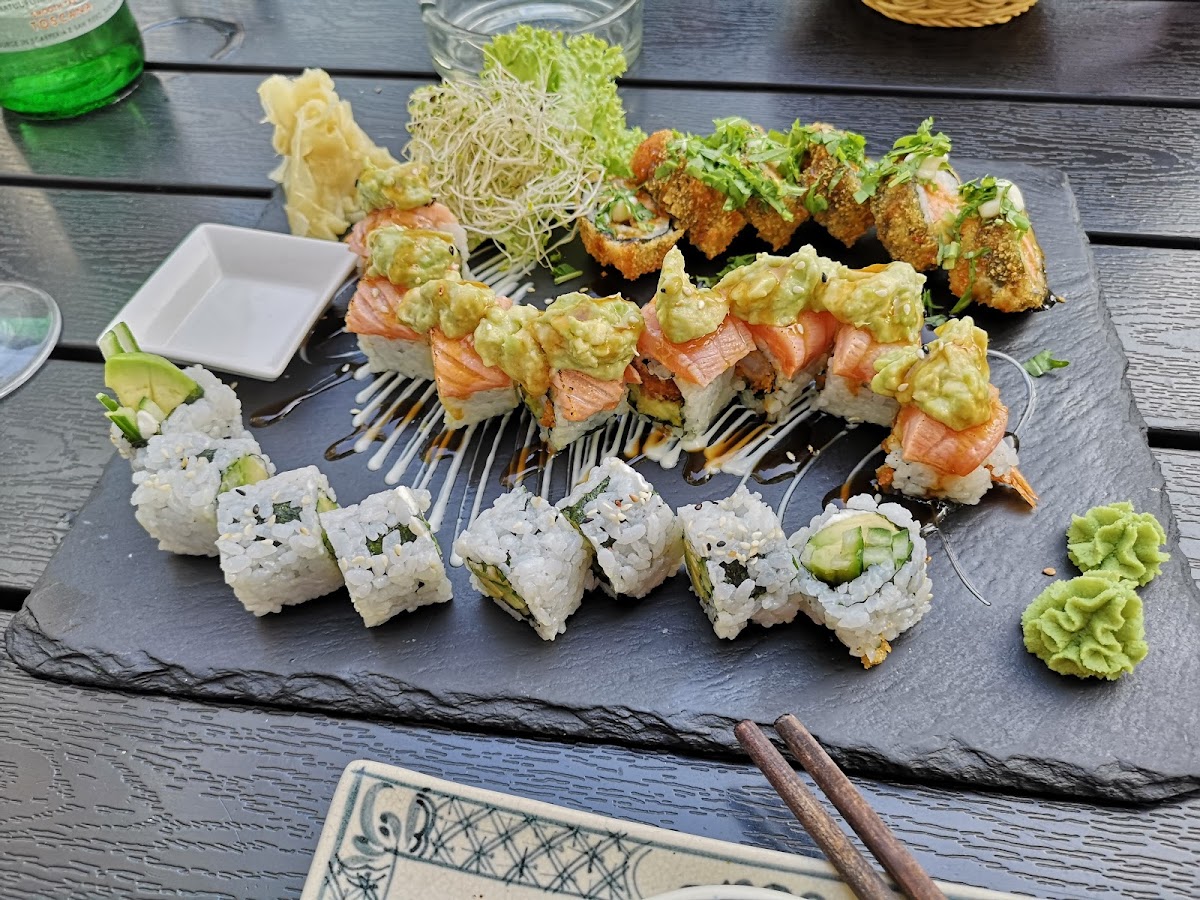 The sushi is beautiful and delicious, the crispy duck is no joke... It's beautifully crispy with a very generous portion. I went with a group of 6 and everyone loved their meal. It was a fairy busy night and the food came out quickly with great service and a friendly staff.