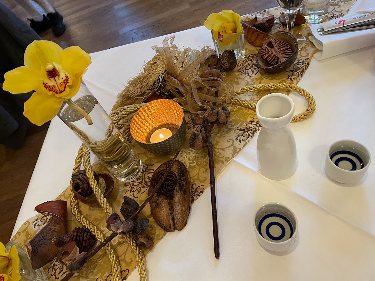Thank you Mangostin Asia for providing me such a delightful night for my birthday. The receptionist gave us the welcome and led us to a separate table with beautiful decoration especially for us. We had two soups as starter Tom Kha Gai and Tom Yum. They are both fresh and delicious (as an Asian, it could be a bit more spicy and sour). As the main course, we had a variety of sushi including spicy tuna and Beijing duck rolls, and of course Kobe beef. It was amazing to eat Kobe with sea salt,m while drinking hot Sake. We really enjoyed the atmosphere and service there. Thank you again for the chef and the team for their great work!
