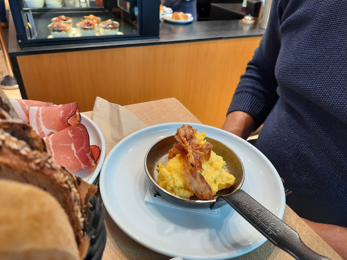 This is very tiny café, and not enough space for such a good food. There is usual lines of clients. First day when we came special to visit this place I was so disappointed to see this situation. Next day we have manage to enter and pick up last available table. The food , especially a breakfast, a bread itself is very tasty. The service is nice a d helpful. You don't wait for your order to come. Everything is fast and efficient. Prices are a bit too high , but this is in the heart of Munich , at very touristic street. So that's the price for it.