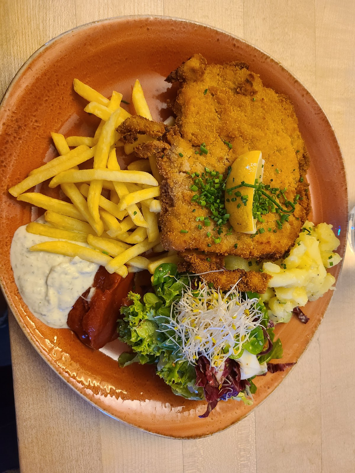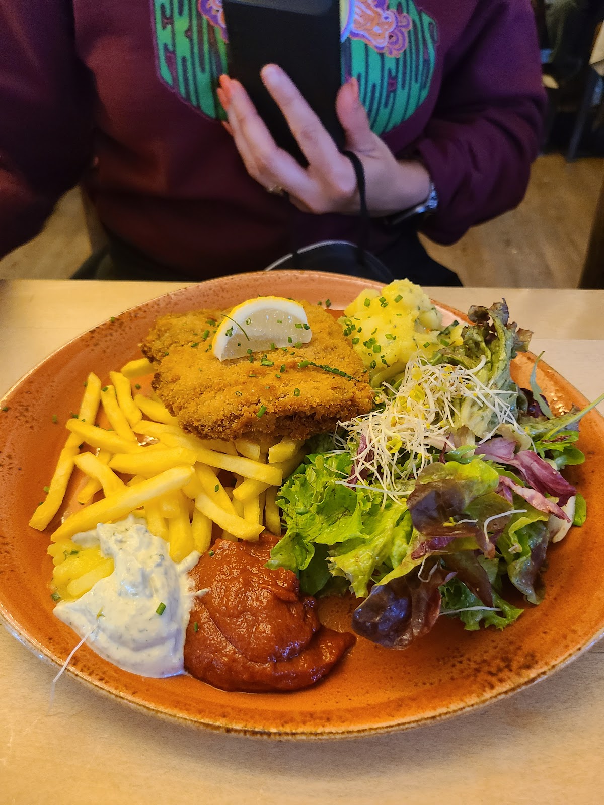 Food was good, all vegan. Service was great, hostess was very cooperative and friendly. Portion size is big. So order conservatively. We had a tough time finishing the dishes. We had Schnitzel, Oriental bowl and carrot apple lemon juice. All items were delicious.