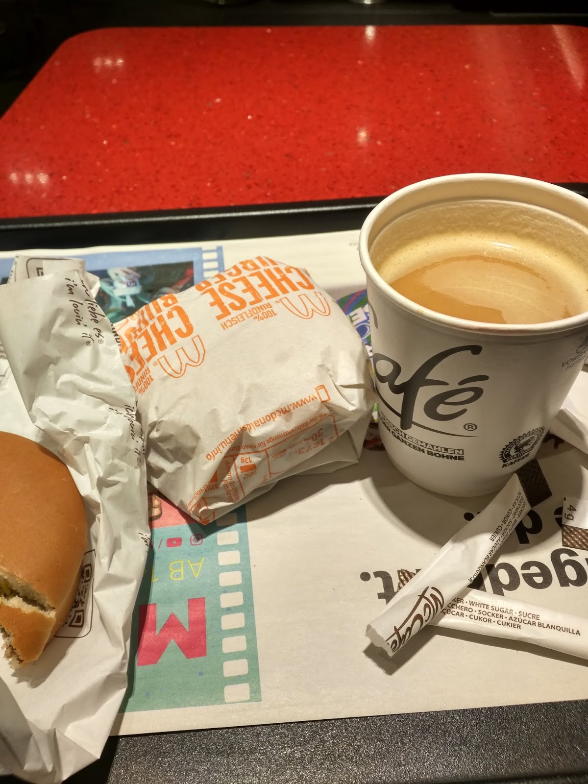 Been here recently. I don't often go to fast food restaurants, so here's how I saw everything there. Well, cheap burgers such as hamburger or cheeseburger are not quite tasty as they lack sauce and lettuce. Why are they being on offer anyway? I don't get it... I guess next time I'd better add a few more euros to experience the true taste of Mc Don's best-known burgers.