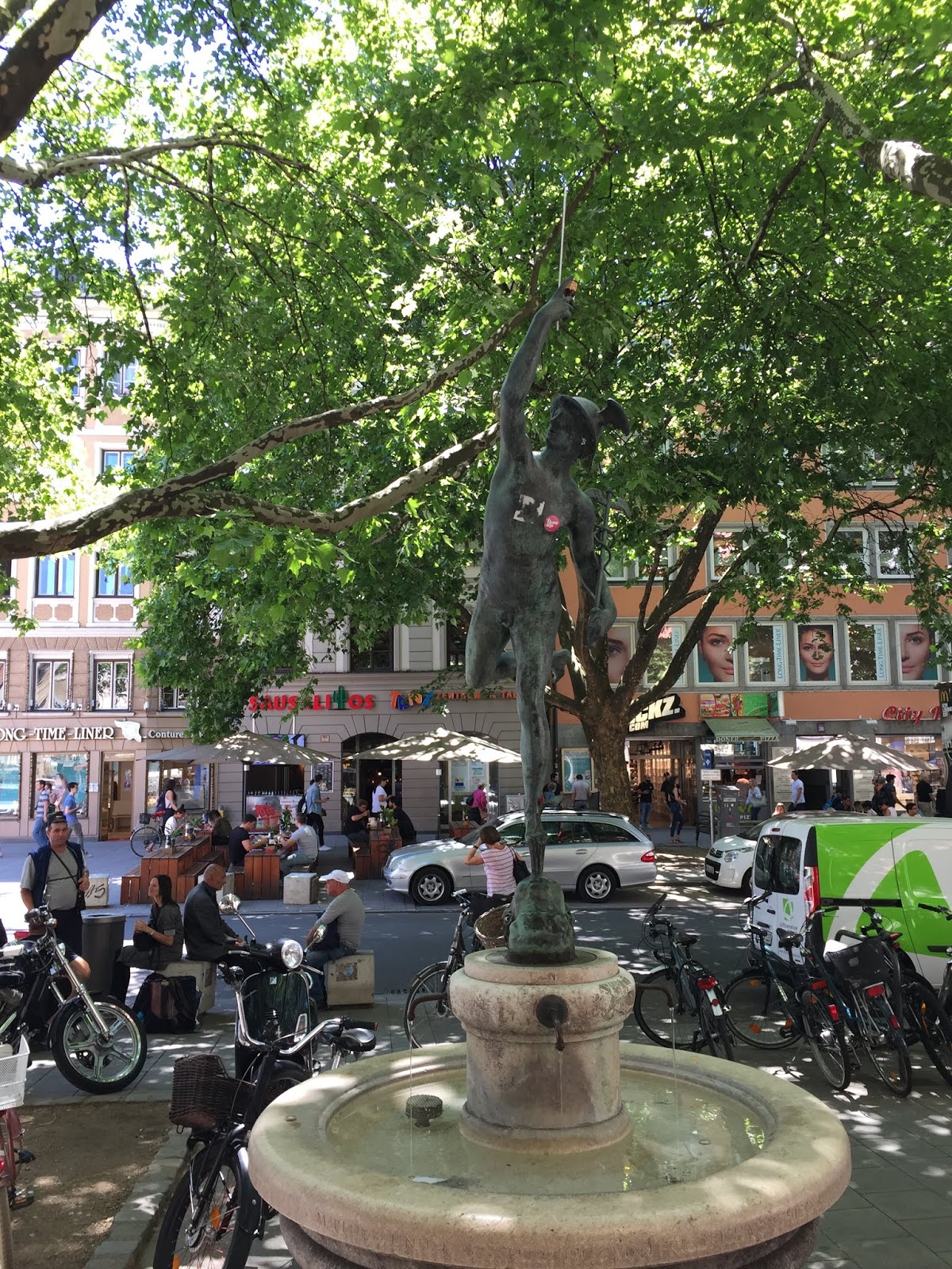 Was walking along Tal towards Isar Gate when I came across this little fountain. At the centre of the fountain is a sculpture of Mercury, classically dressed in a round hat, traveler's cloak and winged temples. The water in this fountain is actually drinkable, which was especially refreshing as the fountain in set amongst the shade of trees.
