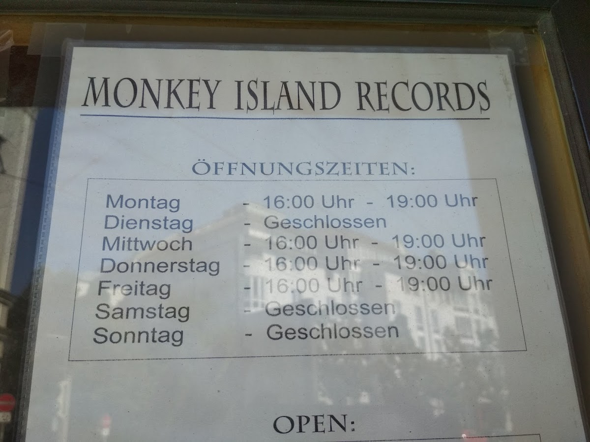 Monkey Island in München-Haidhausen ist einer dieser Schallplattenläden, der eine authentische, angenehm entspannte und etwas nostalgische Atmosphäre der 60er/70er Jahre rüberbringen kann. Zumindest bekam ich dieses Gefühl beim Betreten des Ladens, den Blick auf die Schallplatten an den Wänden und die aufgelegte Musik direkt übermittelt. Darum ist Liebhabern von Rock, Hard Rock und Folk aus dieser Zeit ein Besuch im Monkey Island sehr zu empfehlen. Geführt wird dieser Plattenladen von einem kompetenten und entgegenkommenden Inhaber, von dem man sich als begeisterter Sammler sehr verstanden fühlt.