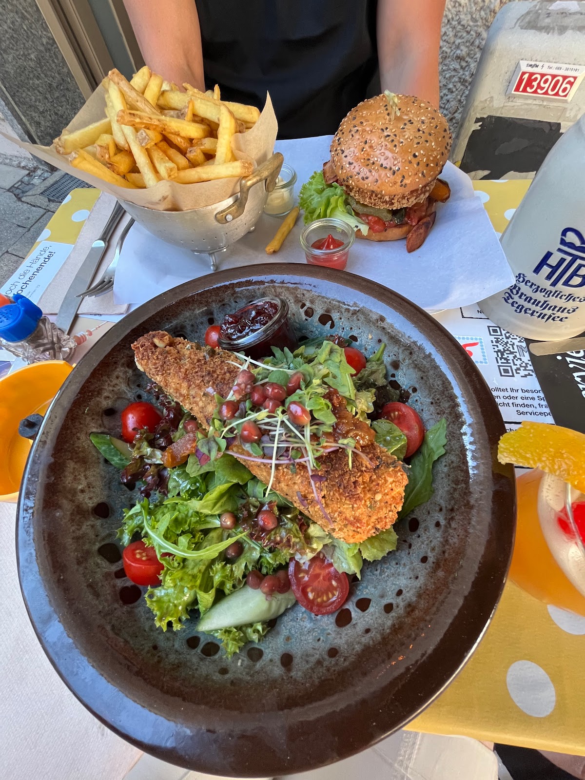 Firstly, music was far too loud, and secondly, we waited an hour for food, they did not warn us it would take long. The food was mostly salad, the schnitzel was good. The other dish was salad with a couple of shrimp and avocado for 16 euro. Not filling and not good value.