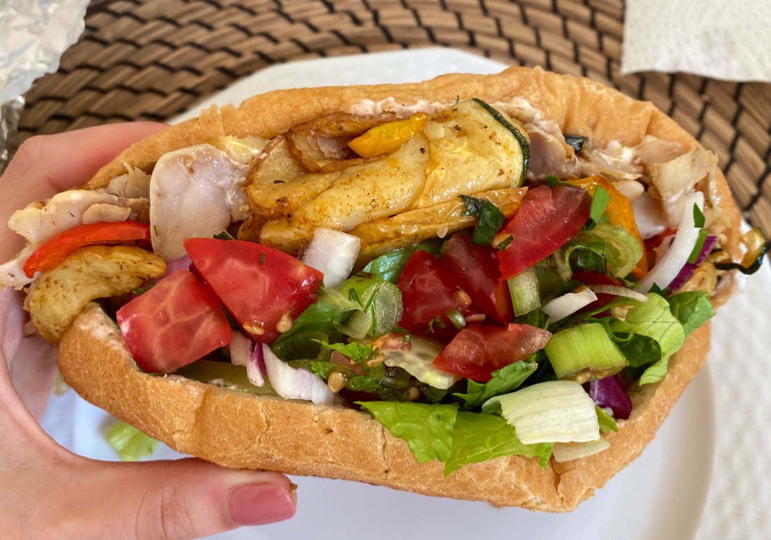The vegetarian döner costs 4.70€ - the sauces and the fried veggies and the then the salad on top of it are awesome!!